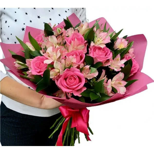 🌹💐Букет 'Саллі' — це ніжна композиція, натхненна простотою і красою природи. Включає в себе 9 вишуканих троянд довжиною 50 см та 5 альстромерій. Троянди надають букету вишуканості і розкіші, а альстромерії додають нотку яскравості та радості. Цей букет подарує радість та заспокоєння, підкресливши неповторність моменту.