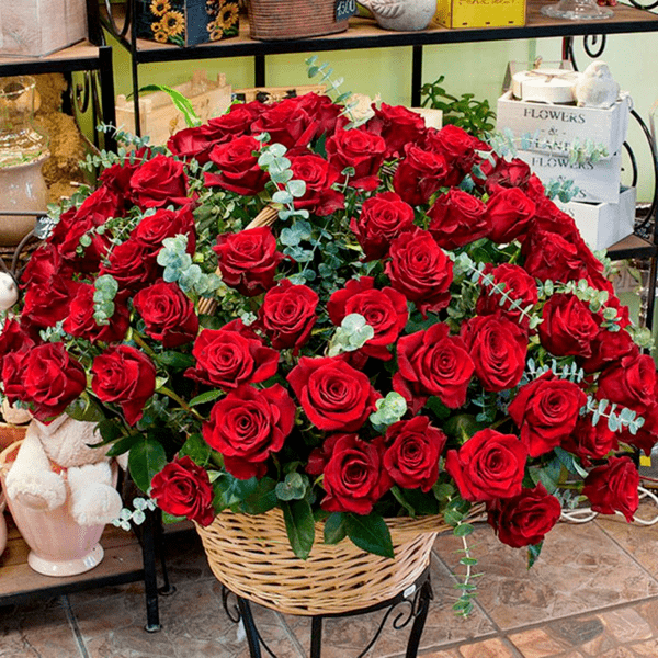 🌹Букет "Нора" - це величне виявлення ваших глибоких почуттів. Складаючись з 101 відібраної троянди, зелені та дрібної декорації, цей букет втілює ніжність і пристрасть. Велика кошик слугує розкішною підтримкою для цієї чудової композиції, готової дарувати багато радості.